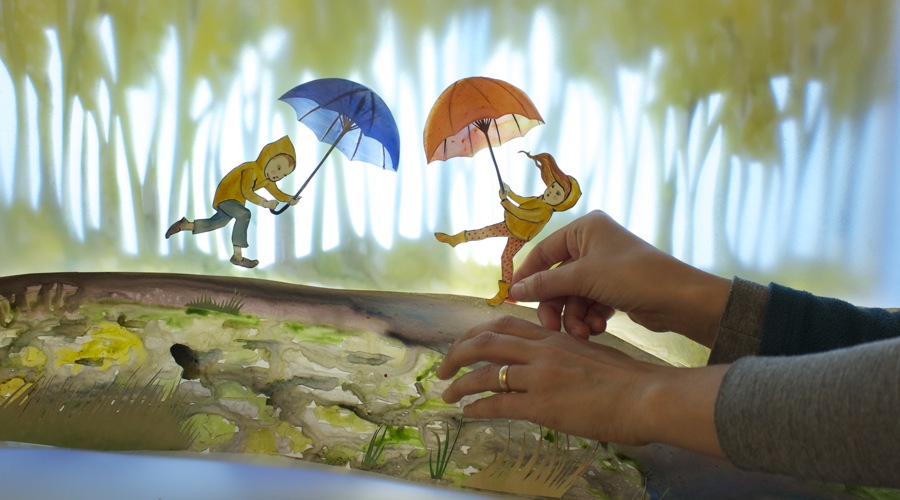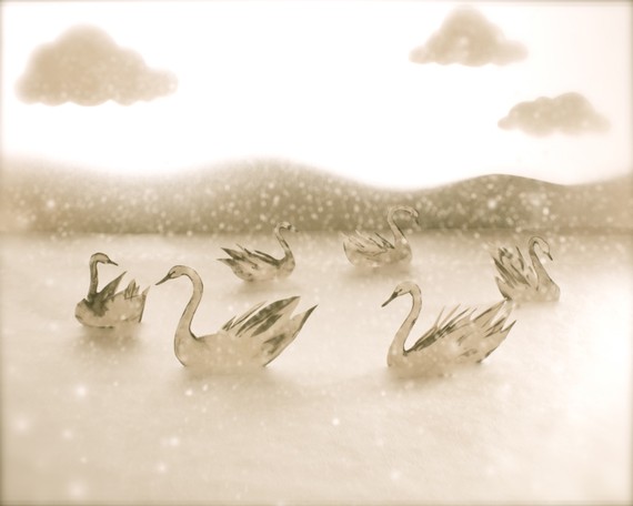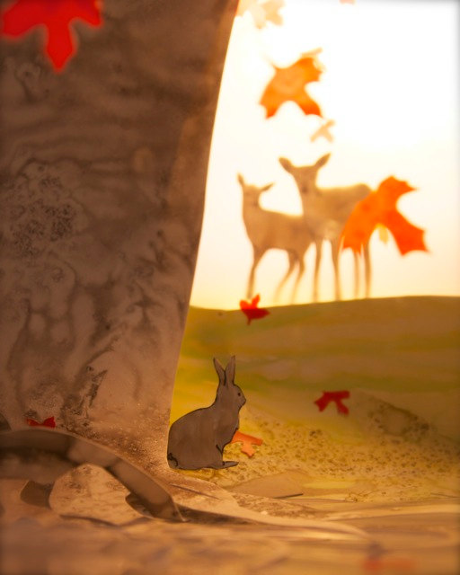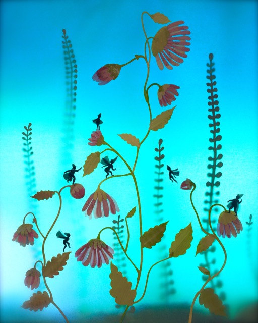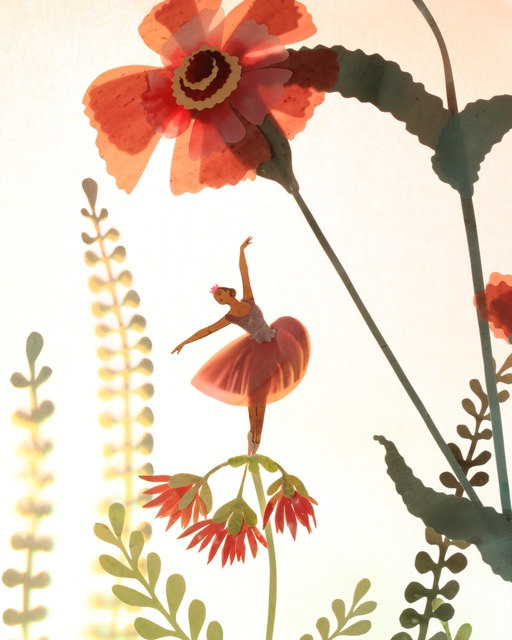 “I have been making little paper worlds since I was a child. I use ink to make small drawings that I cut out and set up in a miniature theatre. Then I light the scene and photograph it.”